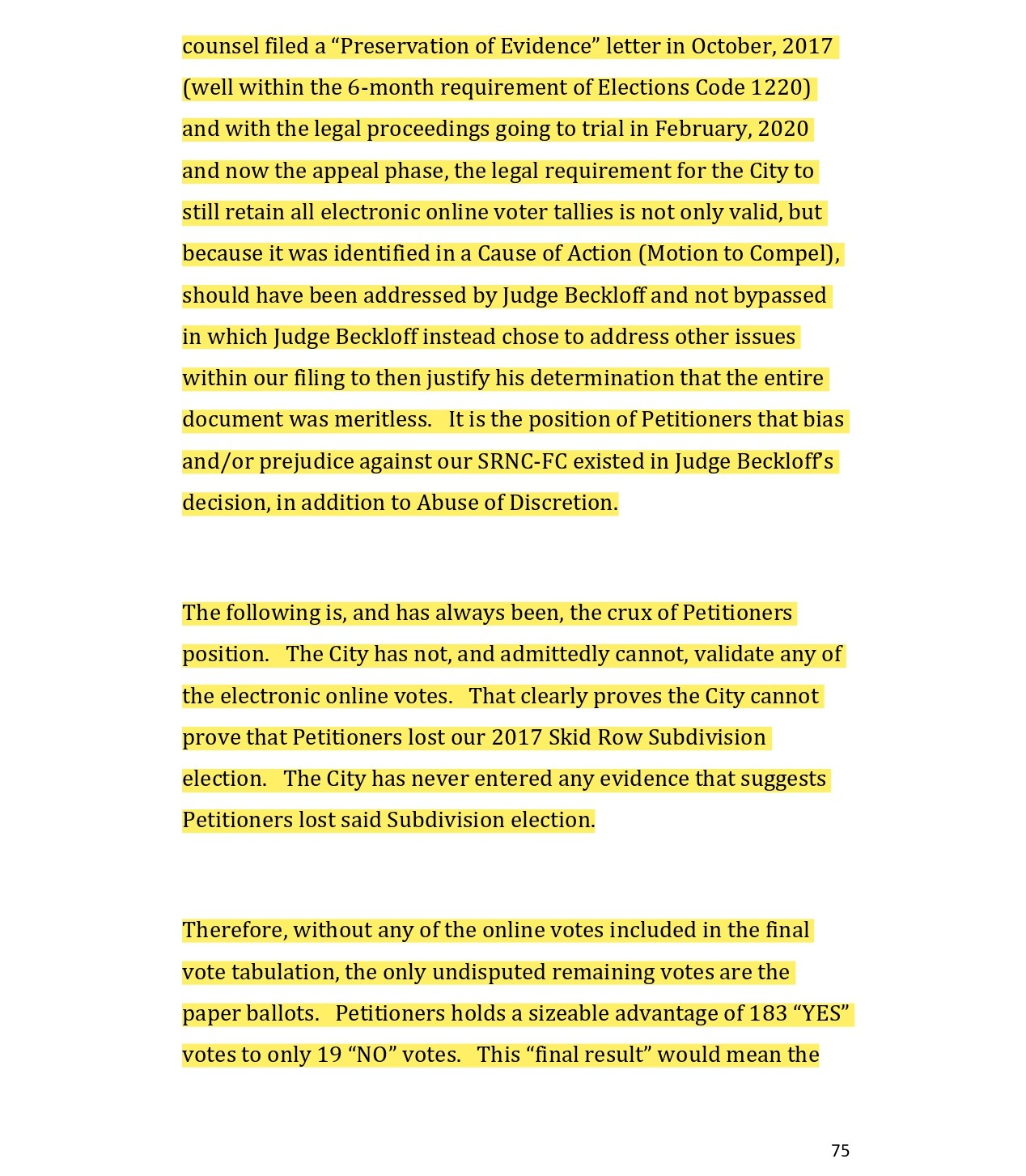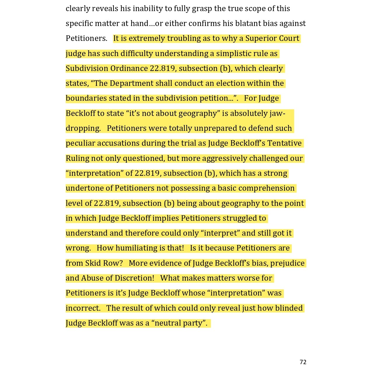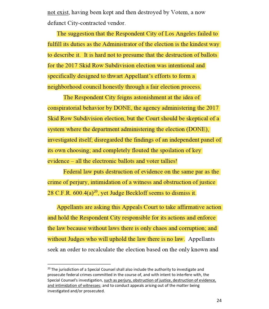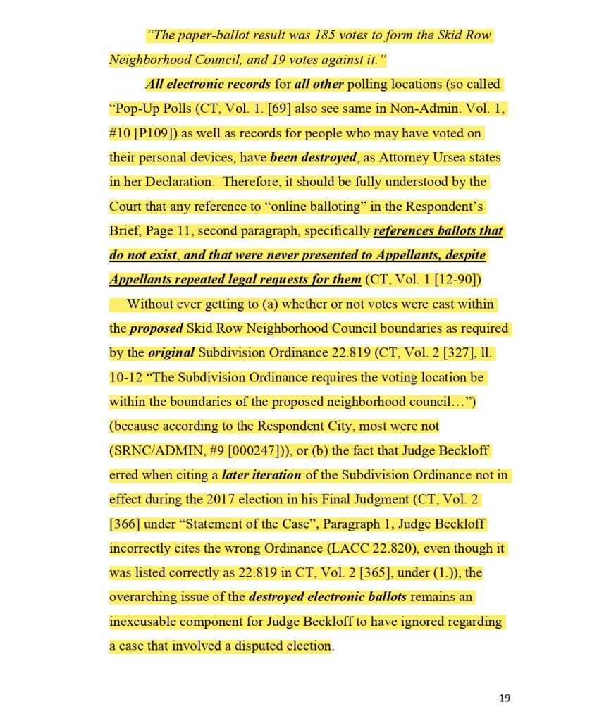 This Appeal is of a decision made by the Superior Court. There are three main documents filed in an Appeal: The Opening Brief (General Jeff filed/Skid Row), The Respondent’s Brief (City of LA filed, in response to the Opening Brief), and then finally The Appellant’s Reply Brief (optional) to let the Appellant reply one last time to the Respondent (Katherine McNenny filed/Skid Row).